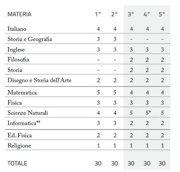 - Informatica: ampliamento del programma con l’inserimento dei fondamenti di Data Science e Intelligenza Artificiale (IA).